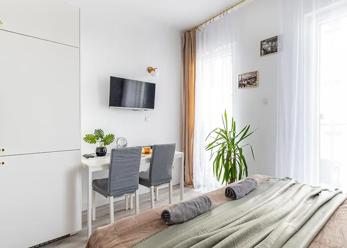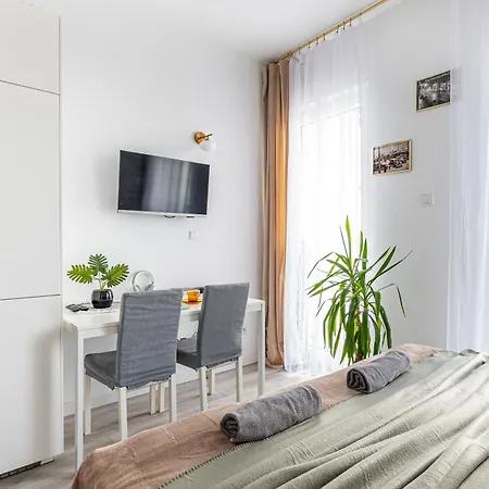 La presencia de una cocina completa completa con horno de microondas y nevera permite a los huéspedes preparar sus propias comidas. Los huéspedes pueden cenar en Makalu Nepal Restaurant, a 13 minutos a pie de este apartamento. La parada de autobús más cercana, PKP Wola 01, está en los alrededores de esta propiedad.